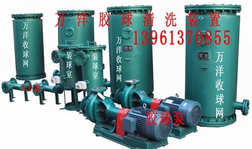 凝汽器膠球清洗裝置由(二次濾網)、收球網、裝球室、膠球輸送泵和電氣控制柜等部件組成